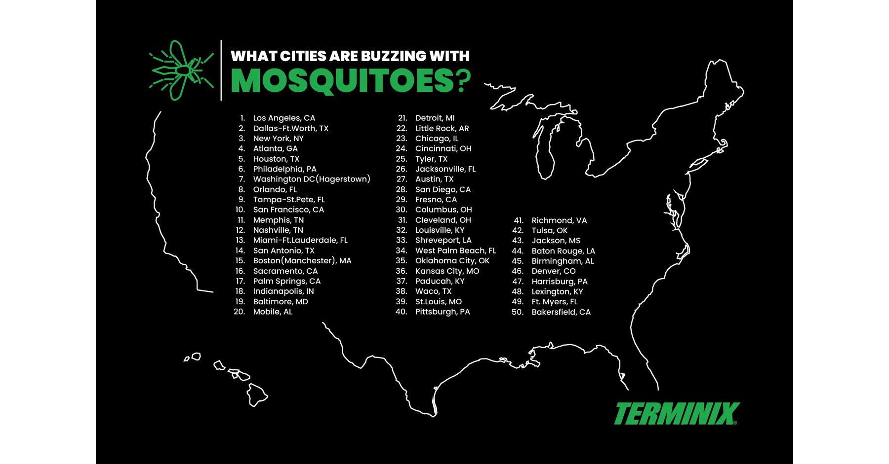 Terminix is a leading provider of residential and commercial pest control. Terminix provides pest management services and protection against termites, mosquitoes, rodents, and other pests threatening human health and safety. Headquartered in Memphis, Tenn., Terminix serves approximately 2.9 million residential and commercial customers in 24 countries and territories. To learn more about Terminix, visit www.Terminix.com.