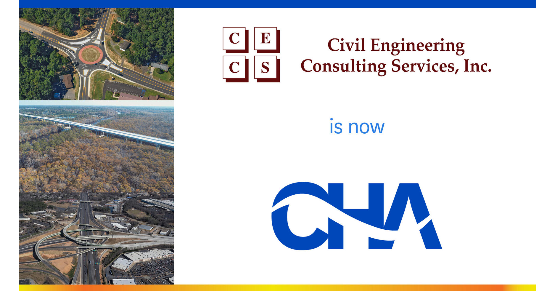 CHA Consulting, Inc. (CHA) is an innovative, full-service engineering, design, consulting, and program/construction management firm providing a wide range of technology-enhanced services to public, private, and institutional clients. We are focused on delivering sustainable, integrated solutions to the world's most challenging infrastructure projects across utilities, transportation, water, and other critical commercial and industrial end-markets.