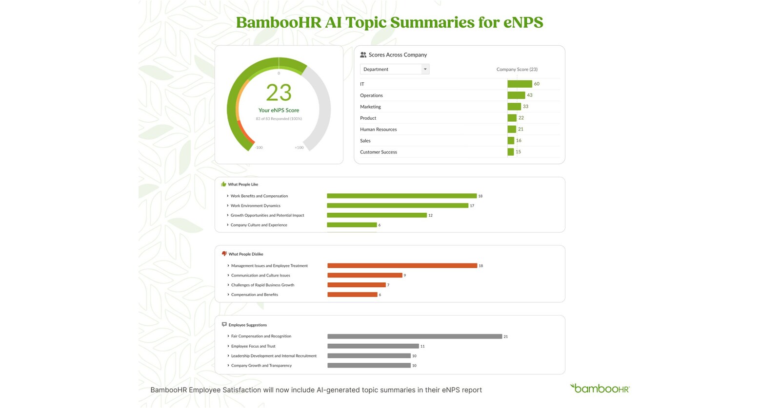 For 16 years, BambooHR has embarked on a mission to help organizations and their employees build better workplaces and achieve their unique missions. We call it “setting people free to do great work.” We believe one of the best ways to do this is by transforming workplace friction into workplace freedom by replacing tedious processes with intuitive experiences and turning dispersed data into strategic insights that inform better decisions.Serving more than 34,000 customers and 3 million employees across 190 countries, BambooHR is more than just HR software—it’s a complete HR ecosystem designed to manage, protect, enrich, report on, extend, and benchmark people data in a way that drives business goals and smarter decision making. Our vision is to become the #1 HR platform for small and medium-sized businesses (SMBs) around the world, and we empower organizations at every stage to make the most impact. We are proud to serve clients across all industries ranging from startups to household names such as Bitcoin.com, Quora, Le Creuset, MasterClass, and the New York City Ballet.To find out more, visit bamboohr.com or follow us on Twitter @bamboohr.For Customer Support, please reach out to support@bamboohr.com.